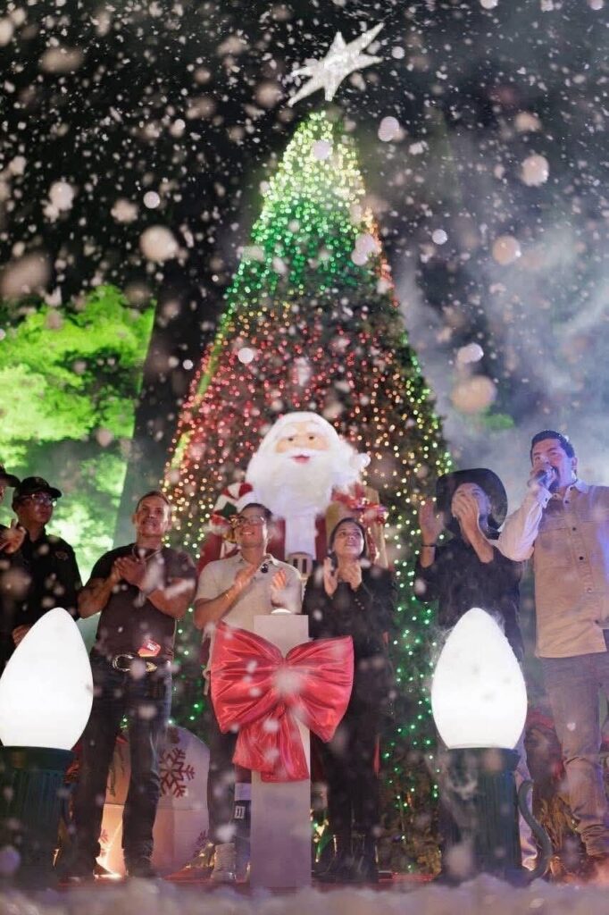 Juárez, N.L. – El alcalde Félix Arratia Cruz encabezó la inauguración de la segunda edición del festival Brilla Juárez 2025, acompañado por la presidenta del DIF municipal, Mónica Oyervides Acosta, consolidando este evento como uno de los principales atractivos decembrinos para las familias del municipio.