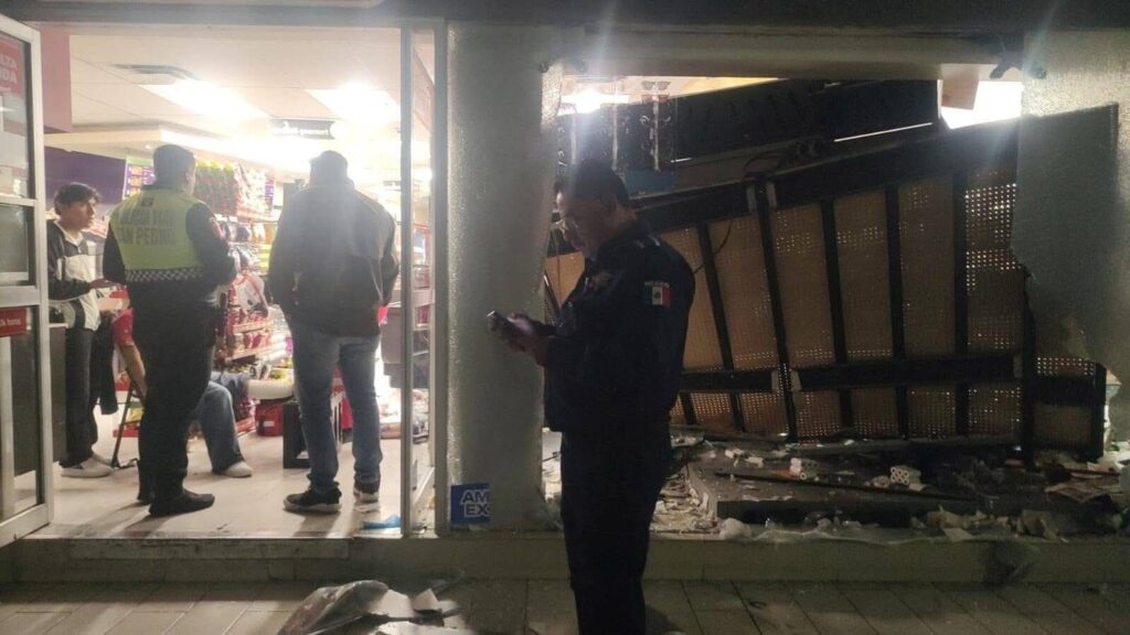 SAN PEDRO GARZA GARCÍA, NL — Un accidente vial se registró cuando una camioneta ingresó a una tienda de conveniencia ubicada sobre la avenida Roberto G. Sada, en su cruce con Gómez Morín, en la colonia Carrizalejo, provocando lesiones a una empleada que se encontraba laborando en el área de cajas.