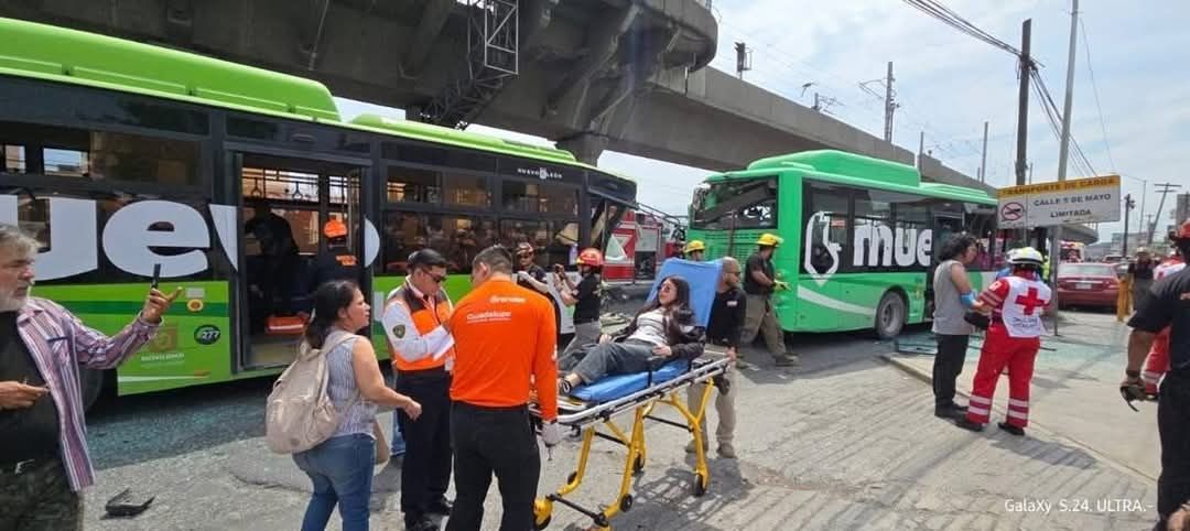 Guadalupe, N.L. – Un aparatoso accidente entre unidades del transporte urbano se registró este miércoles en inmediaciones de la estación Exposición del Metro, en el municipio de Guadalupe, dejando como saldo preliminar al menos siete personas lesionadas.