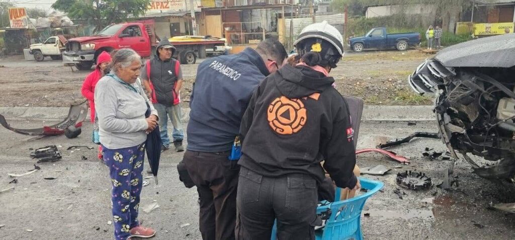 EN APODACA — Un fuerte accidente vial tipo frontal entre un automóvil particular y una camioneta de transporte de personal se registró en la Carretera Apodaca–Juárez, a la altura de Camino al Giro, en la colonia Lomas de la Paz. En el lugar, elementos de Protección Civil Nuevo León confirmaron que seis personas resultaron lesionadas, entre ellas tres adultos y tres menores, quienes recibieron atención prehospitalaria por distintas corporaciones de auxilio.