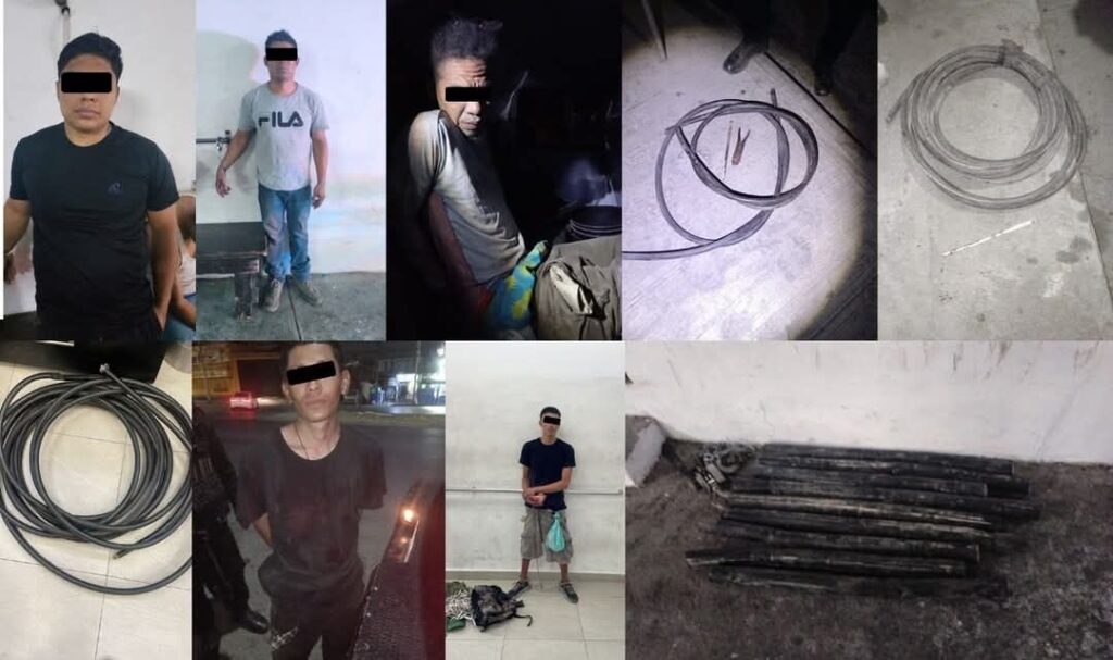 Asimismo, se informó que en las colonias El Porvenir y Cros se detuvo a dos personas más por el robo de cableado. Los cinco detenidos fueron puestos a disposición de las autoridades correspondientes y se integraron las carpetas de investigación por robo, daño a los bienes y ataques a las vías generales de comunicación, este último tipificado como delito federal con penas de hasta 11 años de prisión.