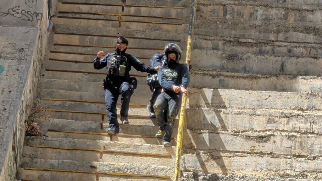 La intervención se dio luego de un reporte ciudadano al sistema C4, que alertó sobre dos personas que descendían con equipo de rappel mientras realizaban grafiti en la infraestructura hidráulica. Al arribar al sitio, los oficiales localizaron a un hombre y una mujer en plena actividad.