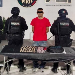 Durante un recorrido preventivo, elementos de Fuerza Civil detuvieron a un hombre que portaba varias bolsas con sustancias prohibidas, en calles del municipio de General Escobedo.