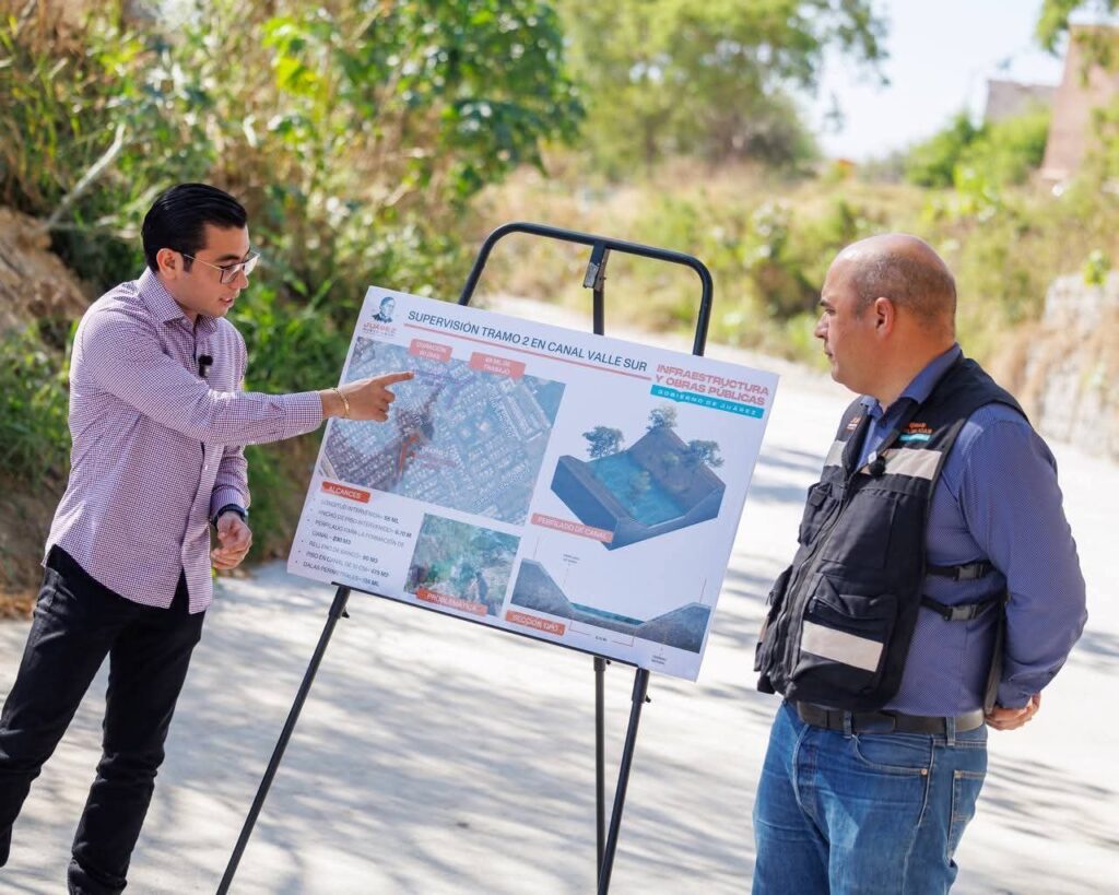 Juárez, Nuevo León, a 18 de febrero del 2026-. Con el objetivo de brindar certeza, tranquilidad y seguridad patrimonial a las familias de las colonias Valle Sur, Valle del Virrey y Vía Siete, el alcalde Félix Arratia Cruz encabezó la entrega del revestimiento y modernización de los canales pluviales de la zona, los cuales durante décadas representaron riesgos de inundación y acumulación de basura.