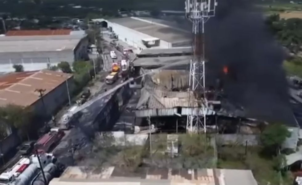 Escobedo, N.L.- Autoridades de Protección Civil de Nuevo León confirmaron un incendio en una empresa ubicada sobre la Avenida de las Industrias, en el Parque Industrial Escobedo, donde presuntamente se almacenan hidrocarburos.