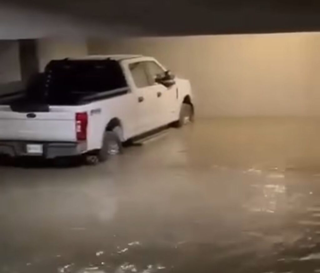Monterrey.- Las intensas precipitaciones provocaron encharcamientos en el estacionamiento de empleados de Pueblo Serena, sobre Carretera Nacional, en la zona sur del municipio.