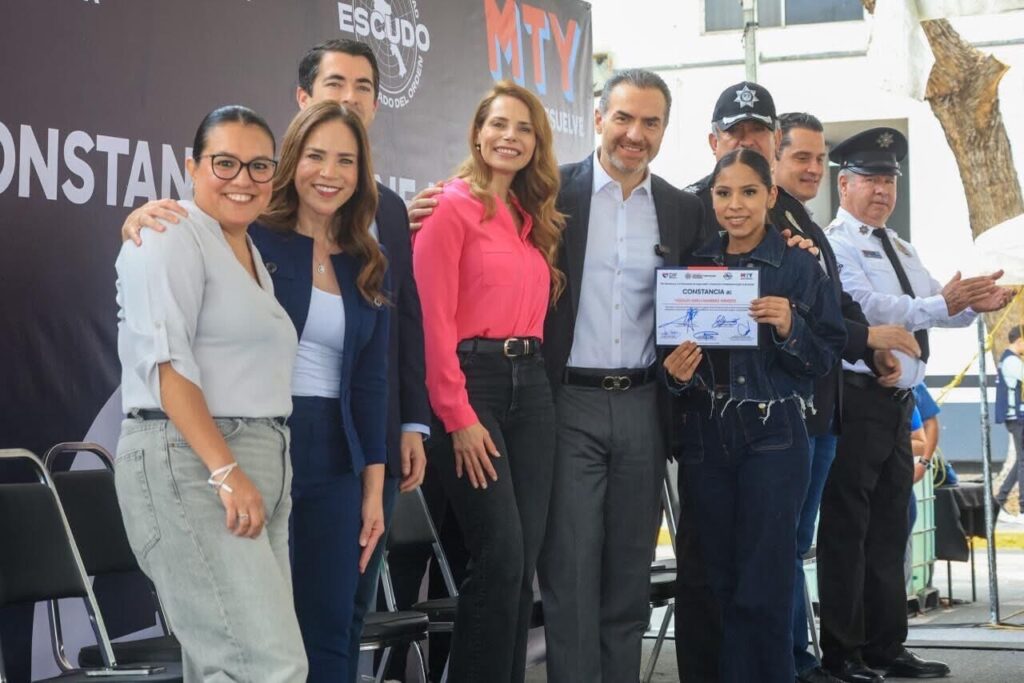 Durante la cuarta entrega de constancias, la presidenta del DIF Monterrey, Gaby Oyervides, acompañada del alcalde Adrián de la Garza, reconoció a quienes finalizaron la capacitación gratuita que se realiza con el apoyo de la Dirección de Tránsito de la Secretaría de Seguridad y Protección Ciudadana.