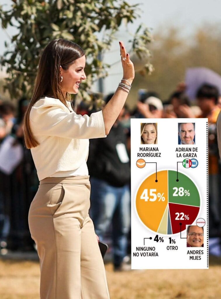 📊 Una encuesta publicada por el periódico El Norte señala que Mariana Rodríguez aparece como una de las figuras mejor posicionadas entre la ciudadanía rumbo a la contienda por la gubernatura de Nuevo León en 2027.